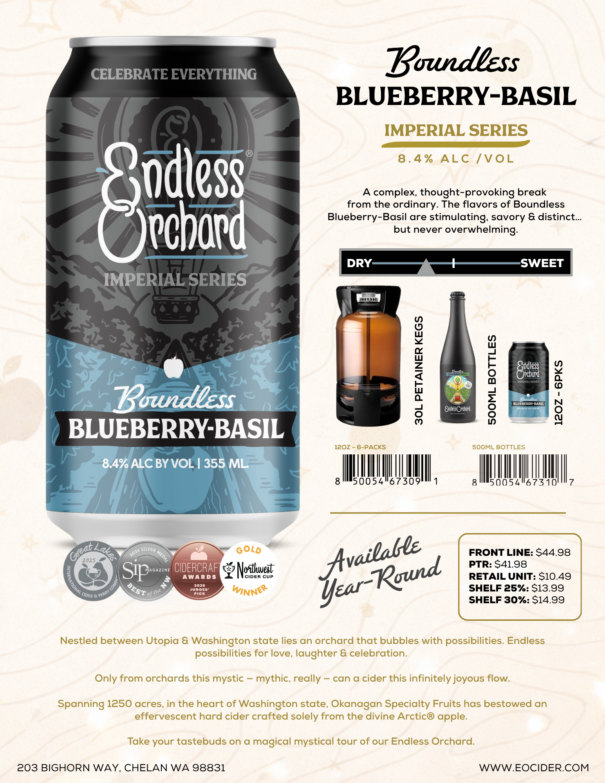 Product poster introducing the Endless Orchard Hard-Pressed Cider brand. Print as 18"x24" mounted on foam core board.